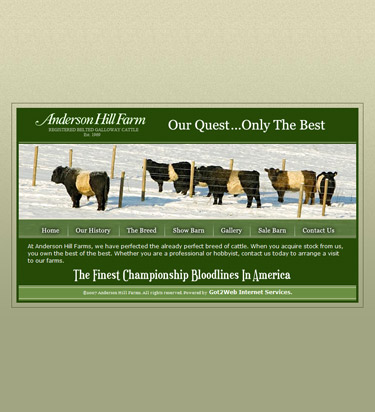 Anderson Hill farm is a successful breeder of heirloom Galloway cattle, one of the most sought after bloodlines in the nation. This project was multifaceted in the sense that Got2Web did literally everything that was involved in its creation from inception to completion.